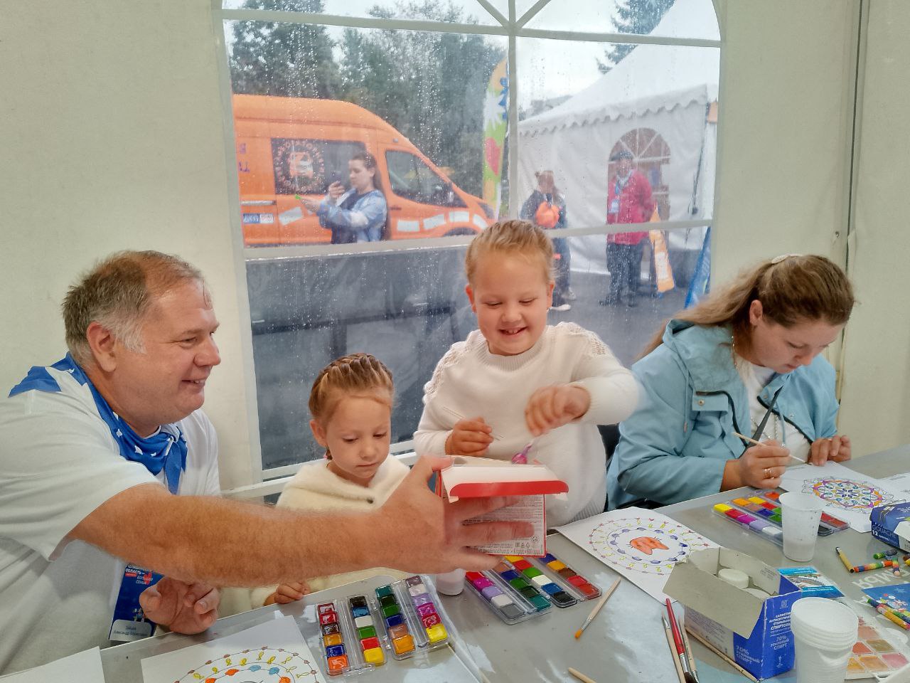 27 августа в нашем городе состоялось большое мероприятие - Фестиваль "Челябинская область - большая семья", в котором приняли участие 11 министерств и Главных управлений области. В рамках фестиваля работала мобильная приемная Губернатора Челябинской области и приемные омбудсменов. Были организованы фотовыставки и кинопоказ о Челябинской области. В работе площадки Министерства образования Челябинской области принимал участие внештатный муниципальный педагог-психолог Кыштымского городского округа Александр Борисович Зайцев. Мастер-классы под его руководством привлекли внимание не только детей, целые семьи и творческие коллективы с интересом приняли в них участие. Мастер класс "Рисуем вместе с детьми" направлен на формирование позитивного мышления детей и взрослых, предполагает выполнение совместного рисунка родителей и детей. Во время работы или после завершения работы, педагогом-психологом даются рекомендации по выявленным «трудностям» в общении между родителями и детьми. Возрастная категория детей от 4 до 8 лет. | |