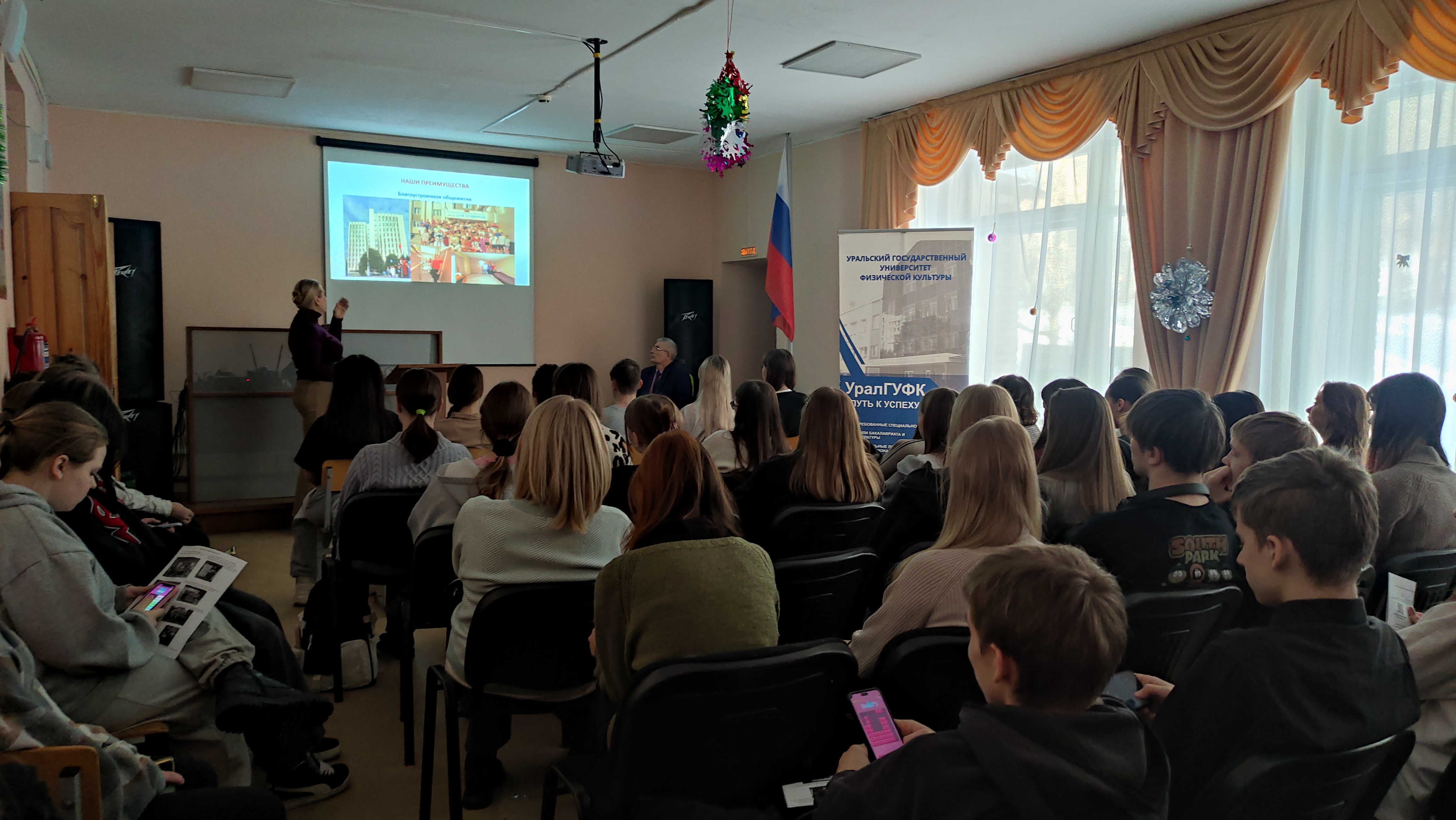 Представители УралГУФК провели профориентационную встречу для учеников 9–11 классов в городе Кыштым. В мероприятии приняли участие 53 школьника и 12 педагогов. Специалисты университета подробно рассказали о перспективах вуза, ключевых этапах и правилах приёмной кампании, разнообразии профессий, связанных с физической культурой и спортом, а также возможностях для карьерного роста — от реабилитологов и тренерской работы до управления спортивными организациями. Встречу провели: Самый спортивный вуз Урала ждёт активных и целеустремлённых выпускников, готовых связать свою жизнь с динамичным миром спорта и здоровья! Выбирайте УралГУФК!